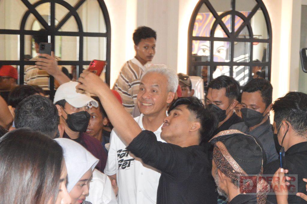 Kabupaten Cilacap – Kehadiran Calon Presiden 2024 nomor urut 3, Ganjar Pranowo membuat heboh para generasi Z dan kaum Milenial. Didampingi Ketua Tim Pemenangan Cabang sekaligus Ketua DPC PDI Perjuangan Kab. Cilacap Taufik Nurhidayat, keduanya menyapa para generasi muda di Cafe Fourtrees, Kec. Cilacap Tengah, Selasa (09/01/2024).