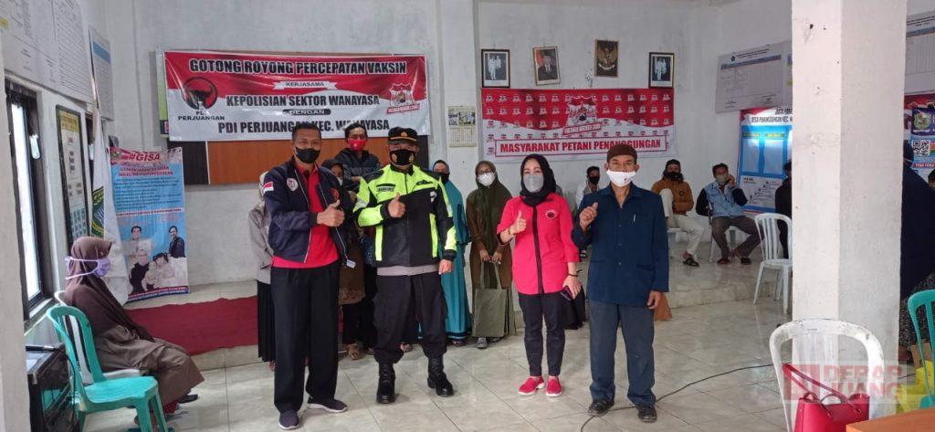 Kabupaten Banjarnegara – Guna memutus mata rantai penyebaran Covid-19 di Kecamatan Wanayasa, Jajaran PAC PDI Perjuangan Kecamatan Wanayasa melakukan gotong royong percepatan vaksinasi yang bekerjasama dengan Polsek Wanayasa. Kegiatan vaksinasi dilaksanakan di Desa Penanggungan.