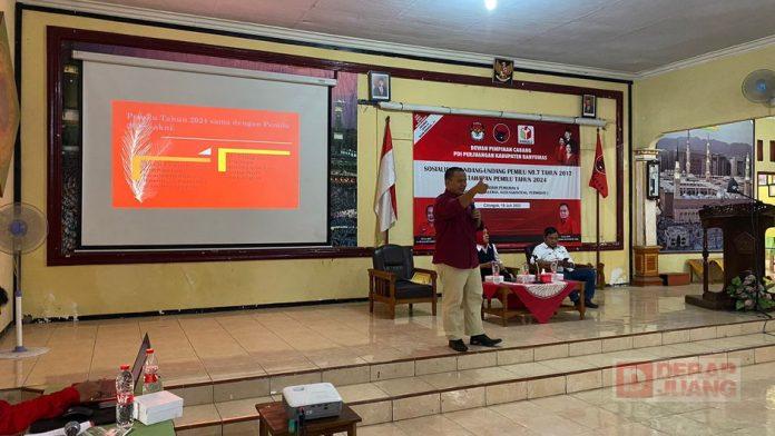 Sosialisasi Pengawasan Penyelenggaraan Pemilu, yang diselenggarakan oleh PDI Perjuangan Banyumas.