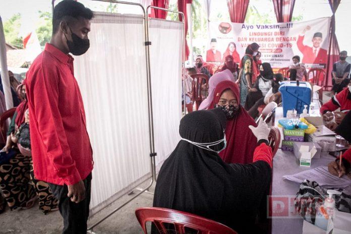 Kabupaten Brebes – PAC PDI Perjuangan Bantarkawung menggelar serbuan vaksinasi gratis bagi masyarakat di dua tempat, yakni di Kantor PAC Bantarkawung dan SMK Maarif NU 01 Bantarkawung, Sabtu (23/10/2021).