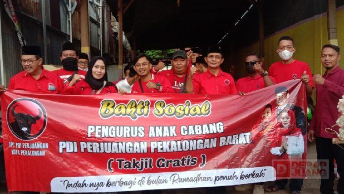 Kota Pekalongan – PAC PDI Perjuangan Pekalongan Barat menyapa masyarakat dengan membagikan takjil kepada pengguna jalan yang melintas di Medono, Sabtu (23/04/2022).