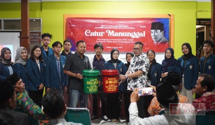 “Sebagai generasi muda harus menjadi pribadi yang unggul, serta memiliki Karakter, Kompetensi, dan Kapasitas. Harapanya generasi muda dapat menjadi aktor yang berperan aktif di berbagai aspek kehidupan, termasuk aspek lingkungan hidup. Pemberian secara simbolis bak sampah yang diberikan oleh temen-temen Undip bekerja-sama dengan Ketua DPRD Sragen, Pak Suparno merupakan salah satu bentuk peran nyata pemuda terhadap lingkungan yang bebas dari sampah,” ujarnya.