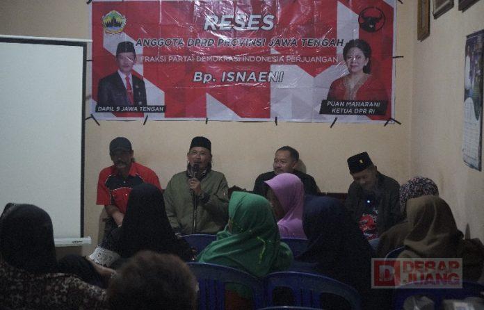 Kabupaten Temanggung – Anggota Fraksi PDI Perjuangan DPRD Jawa Tengah, Muhammad Isnaeni menggelar kegiatan Reses di Dusun Sejeruk, Desa Gandurejo, Kecamatan Bulu bersama warga masyarakat dan pemuda setempat. Adapun acara yang ditujukan untuk menyerap aspirasi masyarakat ini juga turut dihadiri oleh Wakil Ketua Bidang Rekrutmen dan Kaderisasi DPD PDI Perjuangan Jawa Tengah Sofwan D Ardyanto serta jajaran struktural PAC dan Ranting, Rabu malam (18/1/2022).