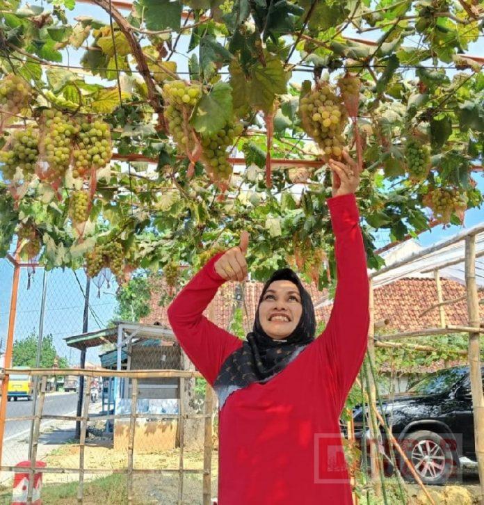 Kabupaten Blora – Politisi perempuan PDI Perjuangan Blora, Tri Yuli Setyowati melakukan panen Anggur di Kebun Anggur Mini Mas Yoyok yang bertempat di pekarangan rumah Yoyok Desa Jepon, Kec. Jepon, Kab. Blora, Minggu (25/08/2022).