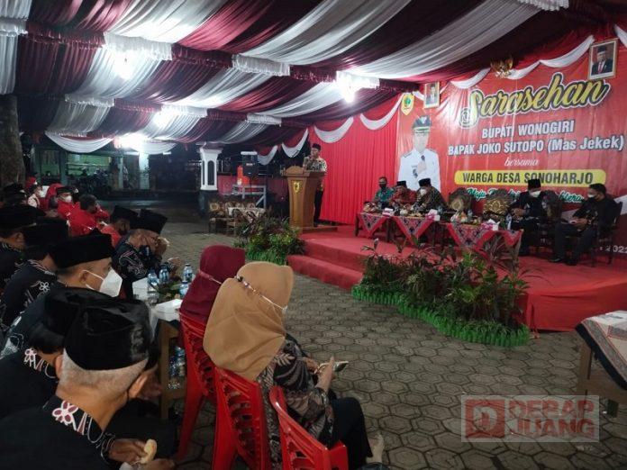 Kabupaten Wonogiri – Kerinduan warga Desa Sonoharjo, Kecamatan Wonogiri untuk bertemu langsung terhadap Mas Jekek terbayar sudah. Atas pergerakan Margono, anggota DPRD Fraksi PDI Perjuangan, Mas Jekek sapaan akrab Bupati Wonogiri bisa hadir di tengah-tengah masyarakat untuk menyapa langsung sekaligus memaparkan program unggulan kepada masyarakat, (27/1/2022).