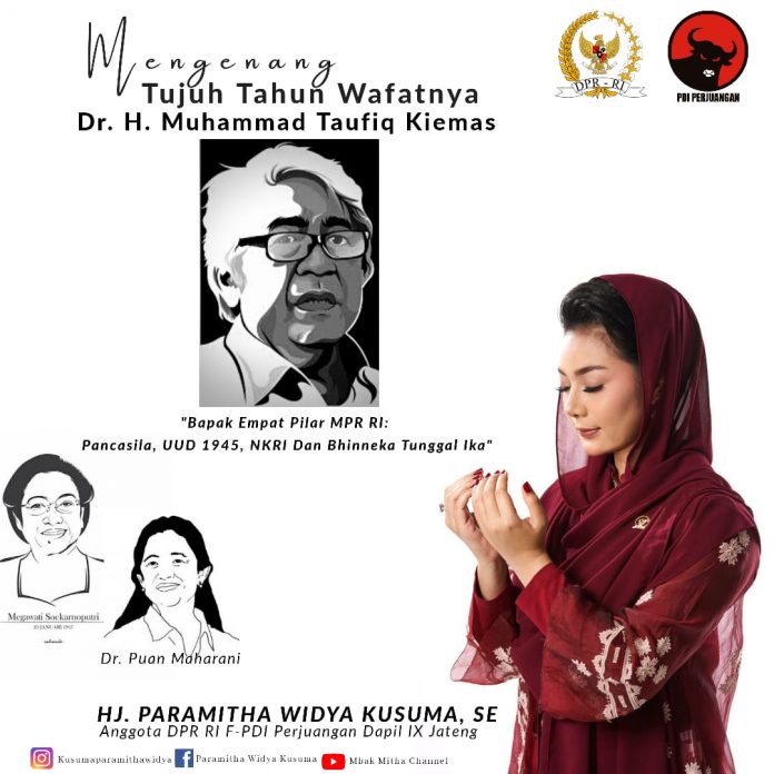 “Taufiq Kiemas merupakan tokoh pemikir intelektual nasionalis yang banyak menyumbangkan pemikirannya untuk negara Indonesia dan juga sistem demokrasi Indonesia,” tutur Paramitha yang juga Anggota DPR RI Fraksi PDI Perjuangan.