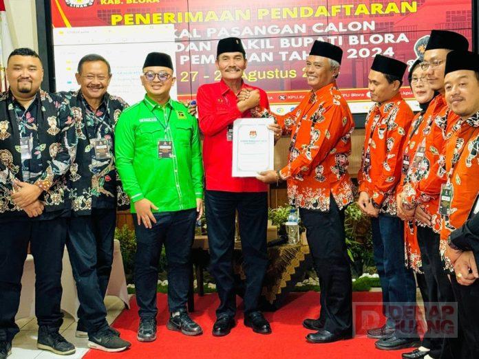 Kabupaten Blora – Pasangan bakal Calon Bupati dan wakil Bupati Blora Abu Nafi dan Andika Adikrishna Gunarjo resmi mendaftarkan diri di KPU untuk maju pada kontestasi Pilkada yang berlangsung pada bulan November mendatang, Rabu (28/08/2024).