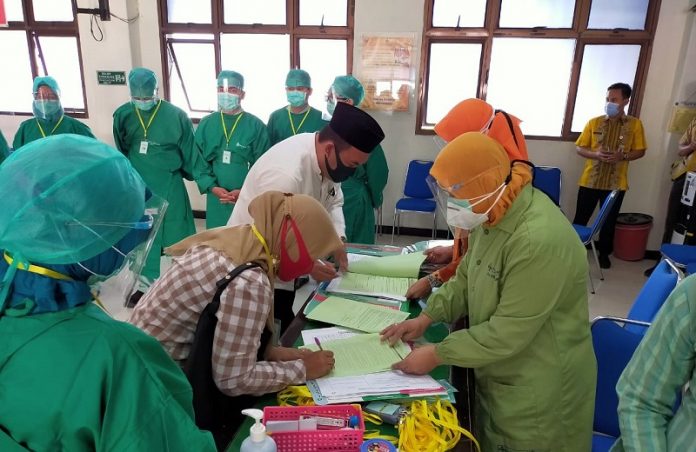 Kabupaten Blora – Pasangan Calon Bupati dan Wakil Bupati Kab. Blora, Arief Rohman dan Tri Yuli Setiowati mengikuti serangkaian tahapan tes kesehatan sebagai syarat menuju pilkada 2020 di Rumah Sakit Moewardi Solo, Rabu (9/9/2020).
