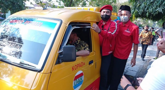 Kabupaten Purworejo – Dengan mengendarai mobil angkutan umum Kopada 048, Pasangan Bakal Calon Bupati dan Wakil Bupati Purworejo, Agustinus Susanto dan Kelik Rahmad Kabuli Jarwinto berkendara menuju Kantor KPU untuk mendaftarkan diri pada kontestasi Pilkada Serentak tahun 2020 di Kab. Purworejo, Jumat (4/9/2020).
