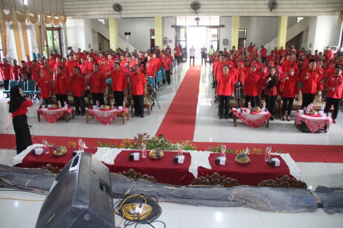 Turut hadir juga dr. Messy Widyaastuti Mars selaku wakil dari DPD PDI Perjuangan Jawa Tengah, mensosialisasikan Peraturan Partai No. 09 tahun 2019.