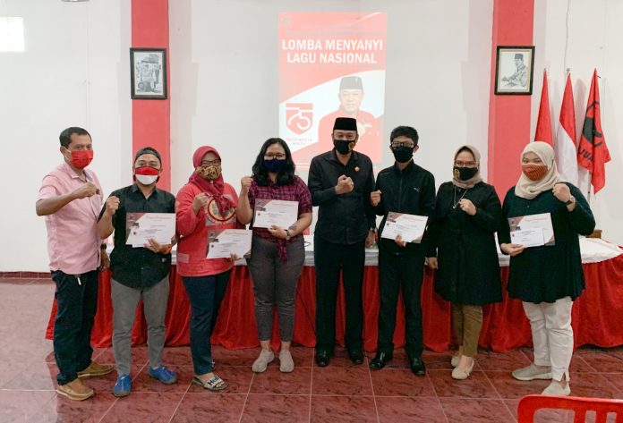 Kabupaten Karanganyar – Dewan Pimpinan Cabang (DPC) Partai Demokrasi Indonesia Perjuangan Kabupaten Karanganyar menggelar acara penyerahan hadiah Lomba Menyanyikan Lagu Nasional. Acara ini merupakan rangkaian kegiatan lomba yang diselenggarakan oleh DPC PDI Perjuangan Kabupaten Karanganyar dalam memperingati HUT Kemerdekaan Republik Indonesia ke-75. Periode lomba dilakukan 24 Agustus-31 Agustus 2020 untuk masyarakat Kabupaten Karanganyar.