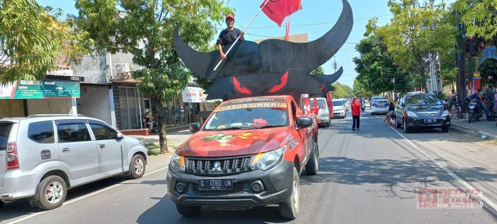 Ketua DPC PDI Perjuangan Kabupaten Pemalang, H. Junaedi yang memimpin langsung pawai dengan mengirimkan 20 orang dengan diiringi dua armada bergambar kepala banteng dan iringan musik Banteng Matador serta lagu NDX Aka Rambut Putih.