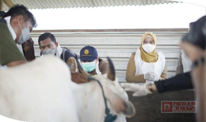 Kabupaten Demak – Sebagai langkah cepat untuk memutus persebaran Wabah PMK bagi hewan-hewan ternak di wilayah Kab. Demak, pada Senin (27/06/2022), Bupati Demak, dr. Hj. Eisit’anah bergerak bersama Bapak Kapolres untuk memantau pelaksanaan Vaksinasi Perdana PMK Tahap I di Kab. Demak.