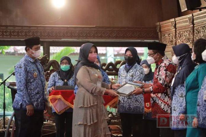 Tidak hanya itu, Hj. Sri Mulyani juga memberikan penghargaan kepada tenaga kesehatan yang berjuang melawan Covid-19. Dalam hal ini, Pemkab Klaten memberikan 2 unit Ambulance, serta alat USG kepada Puskesmas.