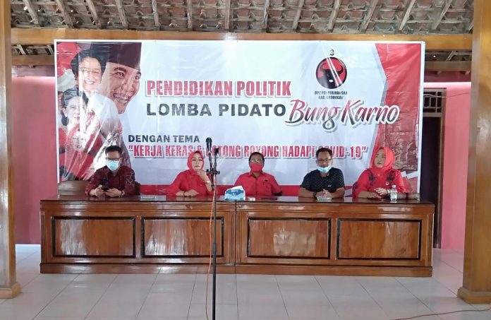 Kabupaten Grobogan – Dalam rangkaian peringatan Bulan Bung Karno Tahun 2020, DPC PDI Perjuangan Kabupaten Grobogan mengadakan kegiatan lomba pidato Bung Karno. Kegiatan yang diikuti oleh 15 peserta tersebut dilaksanakan di pendopo Kantor DPC PDI Perjuangan Kabupaten Grobogan, Sabtu (20/6/2020).