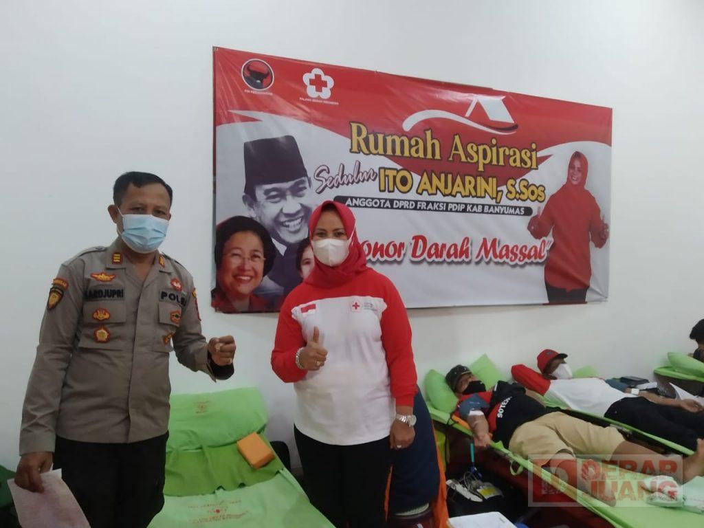 Kabupaten Banyumas – Dalam agenda bulan Bung Karno, Anggota Fraksi PDI Perjuangan DPRD Kab. Banyumas, Ito Anjarini, S.Sos menggelar kegiatan donor darah. Kegiatan sosial yang rutin dilaksanakan setiap 3 bulan, diselenggarakan di rumah aspirasi seduluran Ito Anjarini, Minggu (13/6/2021).