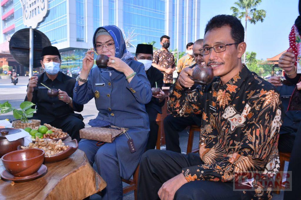 Kabupaten Sukoharjo – Pemerintah Kab. Sukoharjo menggelar bazar jamu. Bazar yang diselenggarakan untuk memperingati Hari Jamu ke-13, dilaksanakan di halaman Kantor Pemerintah Kab Sukoharjo, Kamis, (27/5/2021).