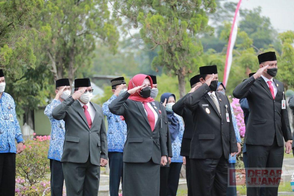 Kabupaten Klaten – Dalam rangka memperingati Hari Pahlawan 10 November 2021, Bupati Klaten, Hj. Sri Mulyani, S.M., bersama Forkopimda Klaten melaksanakan ziarah dan tabur bunga ke makam pahlawan nasional, di Taman Makam Pahlawan (TMP) Ratna Bantala Klaten, Rabu (10/11/2021).