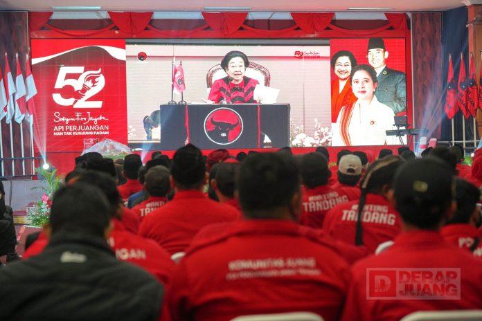 Kota Semarang – Memperingati Hari Ulang Tahun (HUT) PDI Perjuangan yang ke 52 tahun, DPD PDI Perjuangan Jawa Tengah (Jateng) mendengarkan bersama pidato Ketua Umum (Ketum) Ibu Prof. Dr. (H.C) Hj. Megawati Soekarnoputri secara daring di Panti Marhaen Jawa Tengah, Semarang, Jumat (10/01/2025).