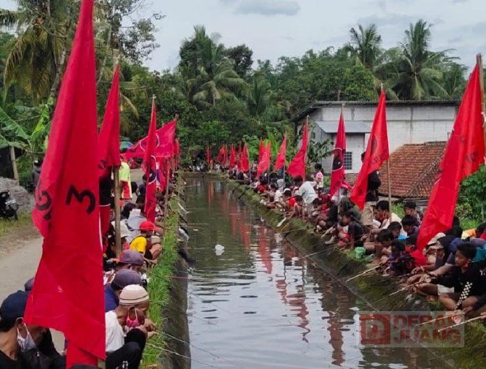 Kabupaten Magelang – Mancing Gratis di Kali Talang irigasi Dusun Santan yang diadakan oleh  jajaran struktural Ranting PDI Perjuangan Desa Sriwedari, Kecamatan Salaman, berjalan meriah. Adapun giat ini dilaksanakan untuk memperingati HUT Ke-49 PDI Perjuangan, Minggu (16/01/2022).