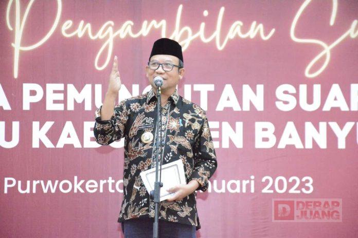 Kabupaten Banyumas – Bupati Banyumas, Ir. Achmad Husein memberikan pengarahan dalam pelantikan 993 Panitia Pemungutan Suara (PPS) se-Kab. Banyumas, yang dilaksanakan di Sasana Krida GOR Satria Purwokerto. PPS ini nantinya akan mengawal pemilu serentak presiden, wakil presiden, DPR RI, DPD, DPRD provinsi dan DPRD Kab/Kota pada 14 Februari 2024 mendatang, Selasa (24/1/2023).