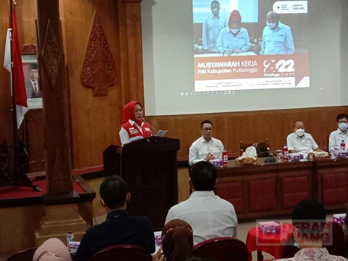 Kabupaten Purbalingga – Palang Merah Indonesia (PMI) Jawa Tengah mengapresiasi inovasi yang dilakukan oleh ketua PMI Purbalingga, yang juga Bupati Purbalingga, Dyah Hayuning Pratiwi. Hal tersebut disampaikan ketua PMI Jawa Tengah yang diwakili salah satu pengurusnya, Gunawan Permadi saat menyampaikan sambuatan pada acara pencanangan bulan dana PMI, serta bulan pelajar peduli kemanusiaan dan juga musyarawah kerja Kabupaten, di Graha Adiguna, kompleks Pendapa Dipokusumo Purbalingga, Jumat (22/7/2022).