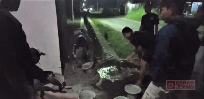 Tak sendiri, Legislator PDI Perjuangan melibatkan Lindu Aji Kec. Adiwerna untuk bergotong royong menambal jalan meski dengan anggaran secara mandiri bersama anggota Lindu Aji Kec. Adiwerna.
