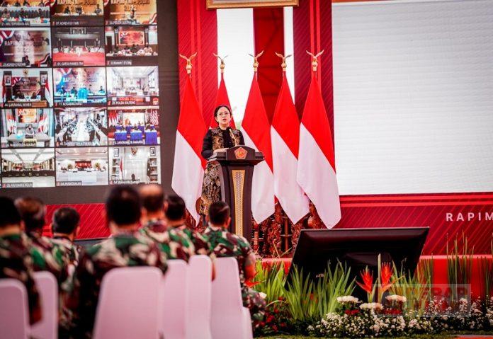 Hal itu disampaikan Puan saat memberi pembekalan dalam Rapim TNI-Polri yang dihadiri ratusan pimpinan komando utama dari dua instansi tersebut di Markas Besar TNI, Cilangkap, Jakarta, Selasa (1/3/2022).