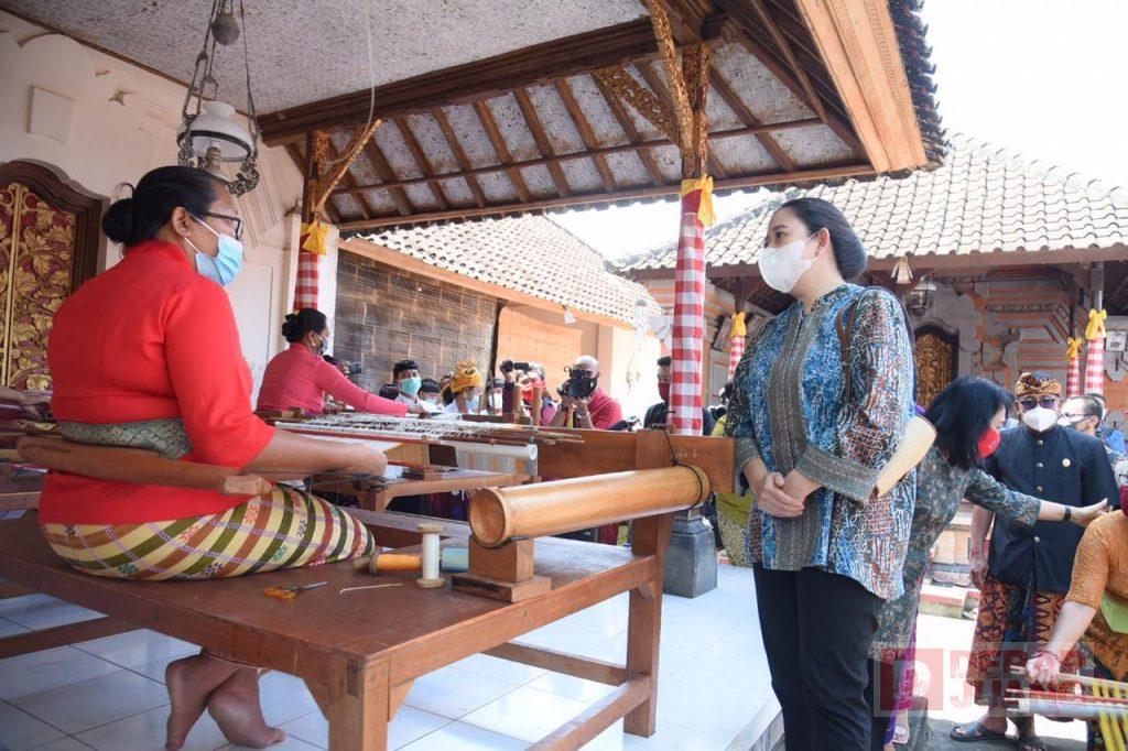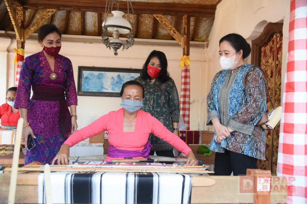 “Terbukti di sini, mereka yang kehilangan pekerjaan di sektor pariwisata, kembali ke rumah, bekerja sebagai penenun kain Cakcak,” ungkap Puan.