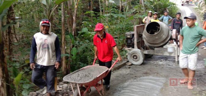 “Dengan dana swadaya kemudian masyarakat sepakat secara gotong royong mengerjakan perbaikan jalan kampung yang rusak tersebut.” Kata Purwadi