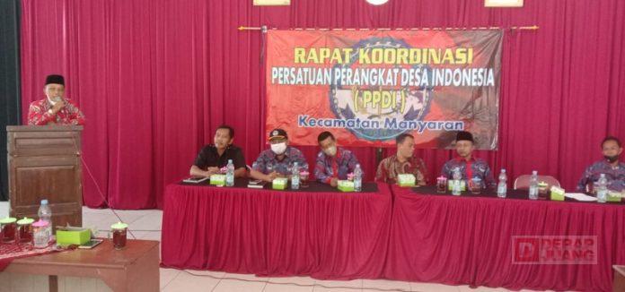 Rapat koordinasi dihadiri oleh sebagian besar perangkat desa di kecamatan Manyaran dengan anggota kurang lebih 80 orang. Dalam sambutannya, Purwadi menyampaikan pentingnya PPDI menjaga soliditas, kekompakan, persatuan, dan kesatuan organisasi. Dia menegaskan organisasi PPDI harus mampu menertibkan anggotanya agar tetap loyal dan setia pada PPDI.