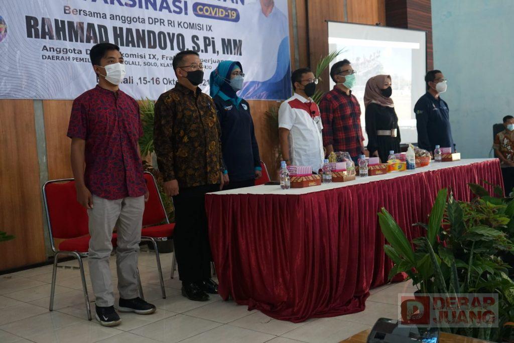 Kabupaten Boyolali – Anggota Fraksi PDI Perjuangan DPR RI, Rahmad Handoyo, S.Pi, M.M., kembali menggelar kegiatan Sosialisasi Germas Protokol Kesehatan dan Vaksinasi Covid-19, di Gedung KPRI Karanggede, Sabtu (16/10/2021).