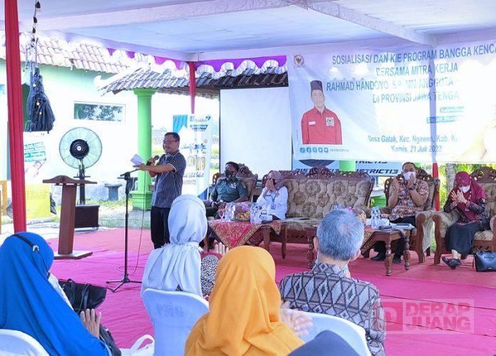 Kabupaten Klaten – Anggota Fraksi PDI Perjuangan DPR RI, Rahmad Handoyo, S.Pi., M.M bekerja sama dengan BKKBN Jawa Tengah menggelar Sosialisasi Dan Komunikasi Informasi dan Edukasi (KIE) Program Bangga Kencana di Rest Area Ngembong, Desa Gatak, Kecamatan Ngawen, Kamis (21/7/2022).