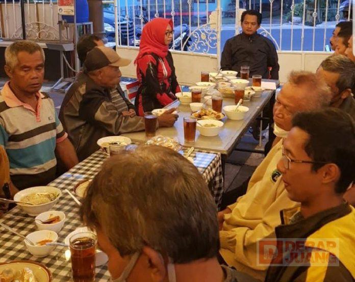 Kabupaten Wonogiri – Sri Rejeki, salah satu KomandanTe Bintang Dua Dapil 2 Wonogiri merangkul Komunitas Ojek Bolo Rodo Pangkalan Pasar Ngadirojo.