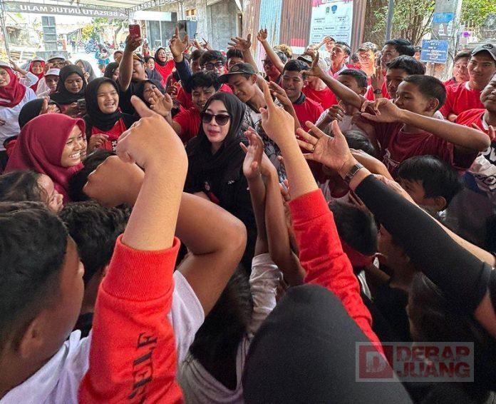 Kabupaten Klaten – Menindaklanjuti instrusksi Partai, Komandan Tempur Elektoral Bintang Dua Dapil 4 Klaten, Ratna Dewanti, A.Md.Keb menggelar sambang warga di Lapangan Garuda Desa Serenan, Kecamatan Juwiring, Minggu (27/8/2023). Saat sambang warga tersebut antusias warga masyarakat sangat luar biasa meriah, karena ada hiburan musik dan doorprize yang disediakan.