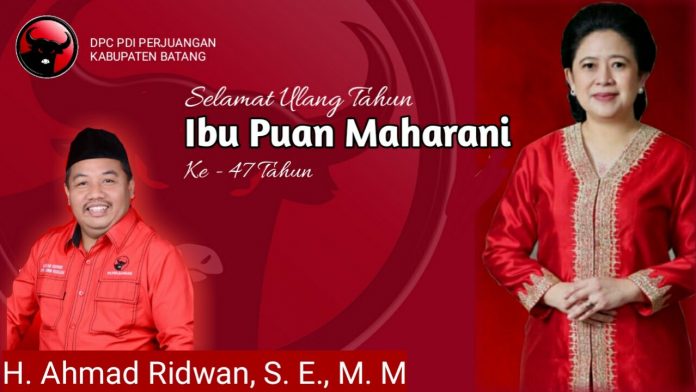 Ketua DPC PDI Perjuangan Kab. Batang, H. Ahmad Ridwan memberikan ucapan selamat ulang tahun kepada Puan Maharani.