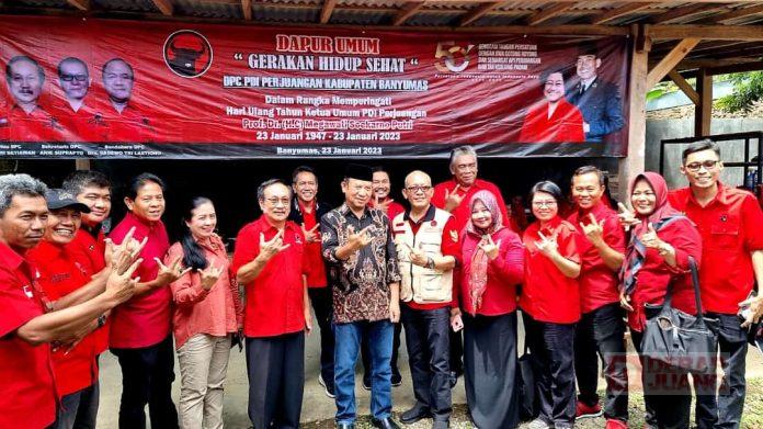 Kabupaten Banyumas – Dalam rangka memperingati Hari Ulang Tahun ke-76 Ibunda Ketua Umum PDI Perjuangan, Dr. (H.C). Hj. Megawati Soekarnoputri, Ketua DPC PDI Perjuangan Kab. Banyumas, dr. Budhi Setiawan menyediakan Dapur Umum untuk ibu hamil dan balita.