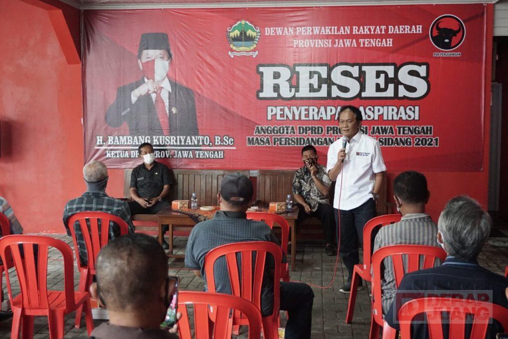 Kabupaten Semarang – Ketua DPRD Provinsi Jawa Tengah, Bambang Kusriyanto menggelar reses di rumah aspirasi miliknya Kelurahan Susukan, Kecamatan Ungaran Timur. Reses diisi dengan pemaparan program kedepan, penjaringan aspirasi, serta mendengar keluhan warga setempat, Selasa (16/3/2021).