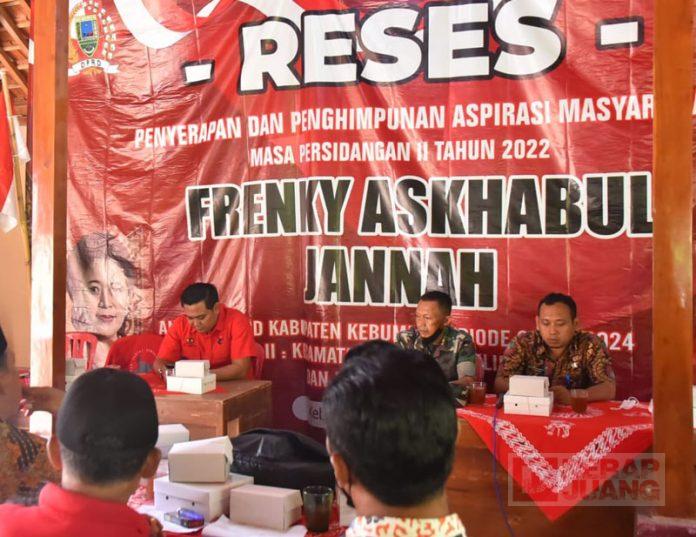 Ajakan itu disampaikan Frenky saat menggelar reses masa persidangan dua tahun 2022 di Desa Klirong, Kec. Klirong, Kab. Kebumen, Rabu (29/06/2022). Reses ini dihadiri jajaran PAC PDI Perjungan Klirong, Ranting Desa Klirong, Kepala Desa se-Kec. Klirong, Koramil Klirong, Kapolsek Klirong, dan sejumlah unsur masyarakat lainnya.