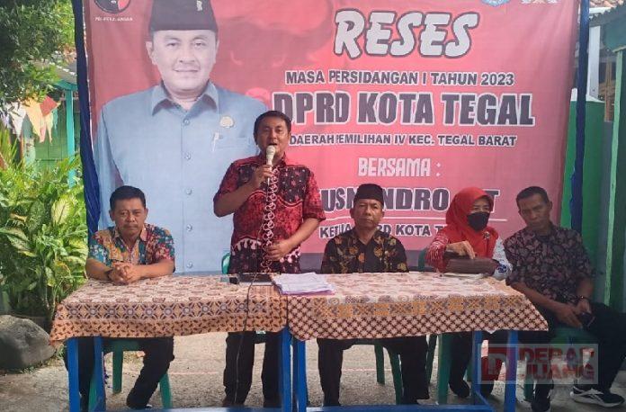 Kota Tegal – Ketua DPRD Kota Tegal Kusnendro menggelar reses untuk mendengar aspirasi dari warga Kelurahan Debong Lor, Selasa(18/04/2023). Reses dihadiri Dinas Pekerjaan Umum dan Perumahan Rakyat (DPUPR) Kota Tegal sebagai narasumber