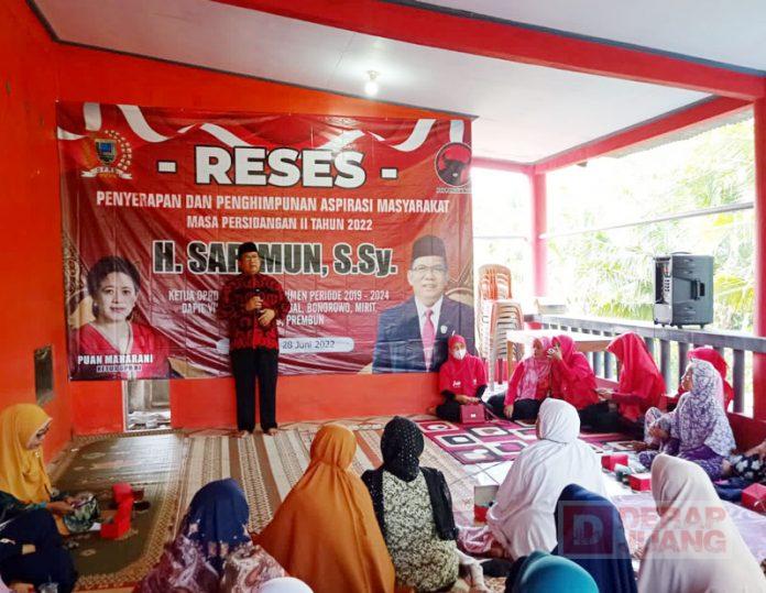 Kabupaten Kebumen – H. Sariumun yang merupakan Ketua DPRD Kebumen Dapil 7 dari Fraksi PDI Perjuangan mengelar reses masa persidangan II tahun 2022. Reses kali ini banyak mengandeng kaum wanita yang ada di Kec. Prembun, bertempat rumahnya, Desa Mulyosri, Kec. Prembun, Kab. Kebumen, Selasa (28/06/2022).