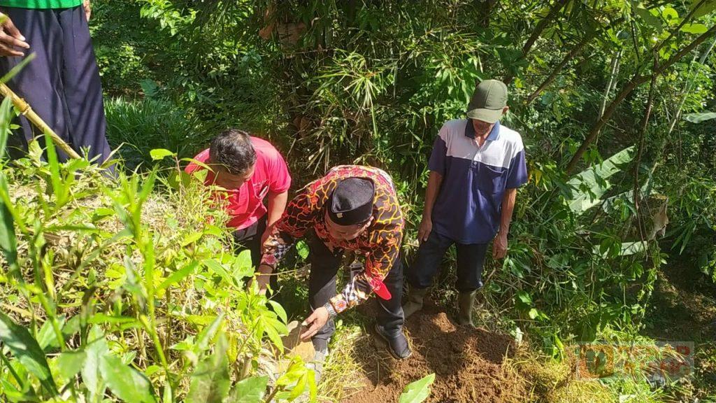 Pada kesempatan tersebut, Ridwan didaulat untuk memberikan peletakan batu pertama pembangunan talud jalan.