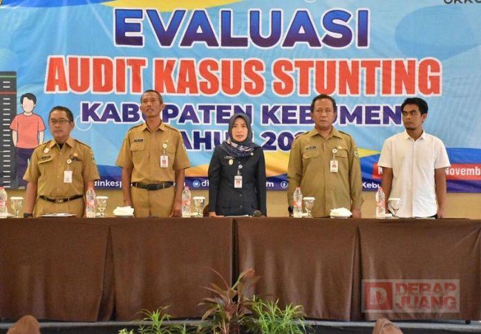 Kabupaten Kebumen – Wakil Bupati Ristawati Purwaningsih menghadiri kegiatan evaluasi audit kasus stunting Kabupaten Kebumen tahun 2023 di Hotel Mexolie Kebumen, Senin (27/11/2023). Turut hadir dalam acara tersebut Asisten 2 Sekda, Kepala OPD terkait, para Camat, serta Tim Percepatan Penurunan Stunting.