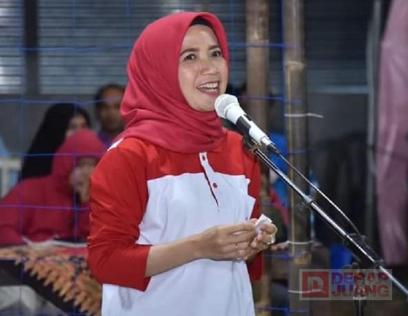 Foto: Ristawati memberikan sambutan dalam acara pembukaan Turnamen Bola Voli Tugusari Open Cup II, Sabtu (10/08/2024).
