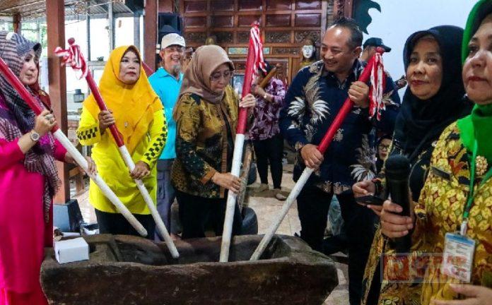 Kabupaten Karanganyar – Wakil Bupati Karanganyar, H. Rober Christanto, M.M bersama Mantan Bupati Karanganyar, Hj. Rina Iriani Sriratnaningsih mengikuti kegiatan Klotekan Lesung di Kampung Tegalasri, Karanganyar.