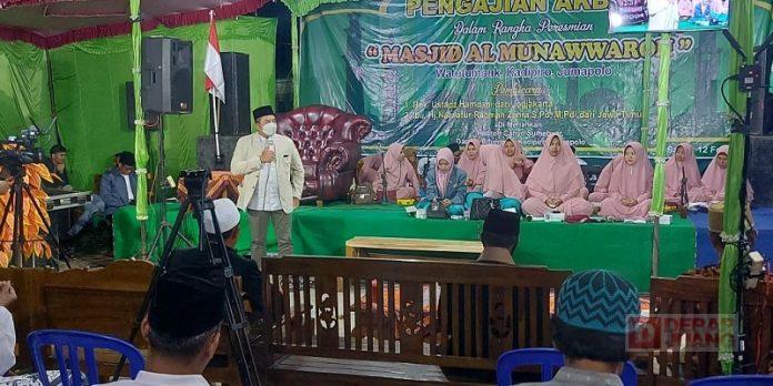 Kabupaten Karanganyar – Di tengah guyuran hujan tak menghalangi masyarakat Dusun Watu Tumpuk, Desa Kadipiro, Kecamatan Jumapolo untuk datang ke pengajian akbar desa setempat. Rupanya pengajian bebarengan diresmikan Masjid Al Munaworoh hasil patungan bersama. Dengan kurun waktu lima bulan, masjid dua lantai itu diresmikan oleh Wakil Bupati Karanganyar, Rober Christanto, Sabtu (12/2/2022).