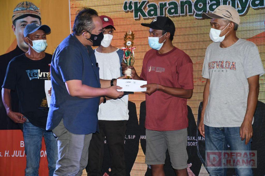 Kegiatan dilanjutkan dengan penyerahan hadiah juara 1 kepada “Novendra” yang mewakili Kab. Karanganyar dalam kegiatan Greget Orchestra Concert 2021, di The Heritage Palace, Sukoharjo.