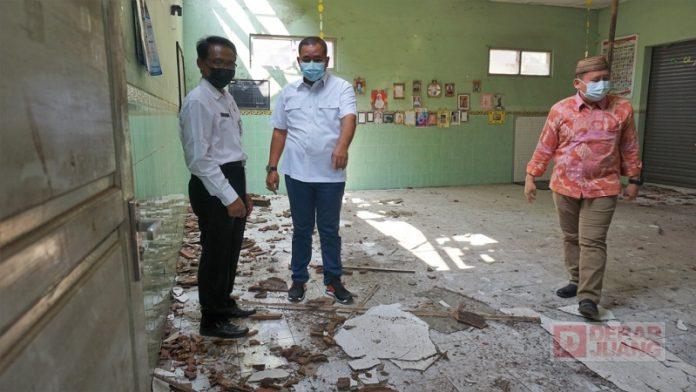 Kabupaten Kudus – Ketua DPRD Kab. Kudus, Masan dengan didampingi beberapa anggota Komisi D DPRD Kudus, Muhtamat dan Endang Kursistiyani, meninjau ruang kelas SD 4 Prambatan Kidul, Kec. Kaliwungu yang atapnya roboh beberapa hari lalu, Kamis (02/09/2021).