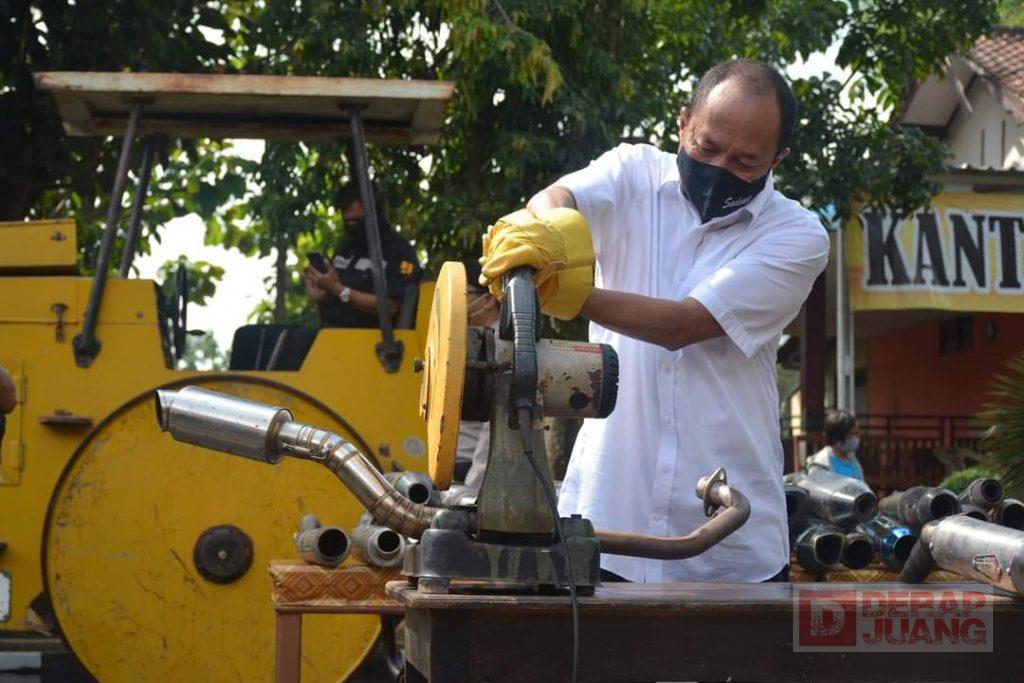 Kabupaten Banyumas – Wakil Bupati Banyumas, Sadewo Tri Lastiono menghadiri pemusnahan ratusan liter miras tradisional, serta ratusan botol miras berbagai merek. Sebanyak jutaan miras, dimusnahkan dalam operasi penertiban dan keamanan selama bulan Ramadan. Selain itu, terdapat 30 knalpot brong, serta 1 kilogram bubuk mercon juga diamankan oleh aparat kepolisian, Jumat, (8/5/2021).