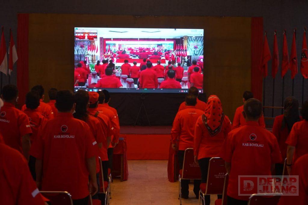 Kegiatan Rakercab secara virtual, diikuti oleh Bupati Boyolali, M. Said Hidayat, SH., Wakil Bupati Boyolali, Wahyu Irawan, SH., Anggota Fraksi PDI Perjuangan DPRD Boyolali, Struktural DPC PDI Perjuangan Boyolali, jajaran PAC, Anak Ranting, Komunitas Juang Kab. Boyolali, BSPN, serta Satgas PDI Perjuangan Kab. Boyolali.